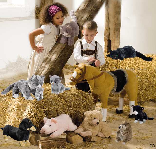 Im Stall Plüschtier Katze, Plüschtier Pferd, Plüschtier Hund, Plüschtier Schwein, Plüschtier Igel |