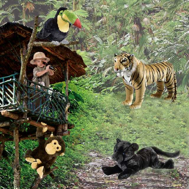 Tropen Plüschtier Tukan, Plüschtier Tiger, Plüschtier Affe, Plüschtier Panther |
