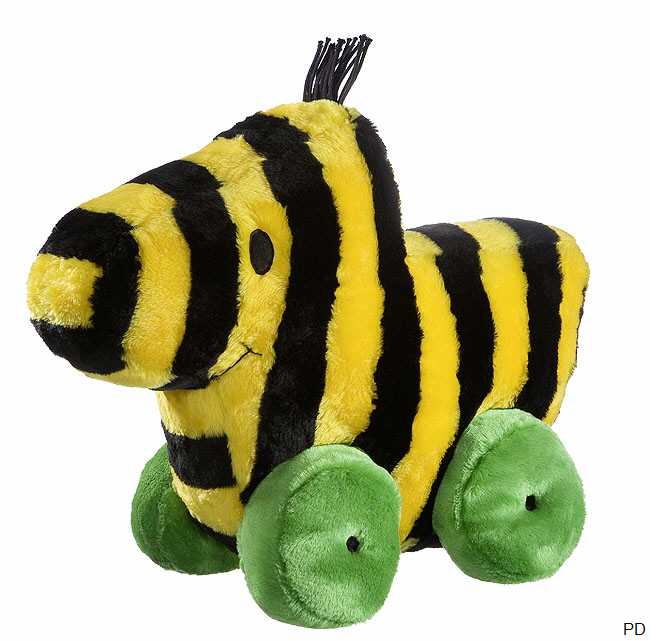 Farbe der Plüschtigerente Janosch: schwarz/gelb mit grün