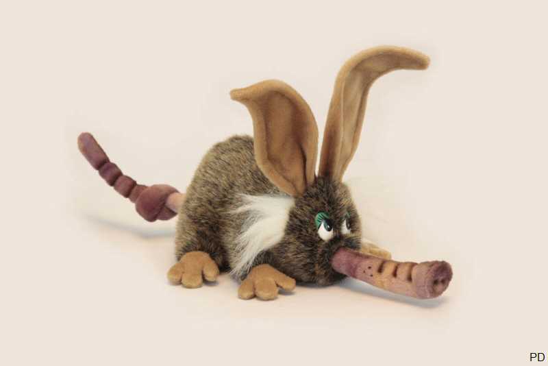 Der Schwanz des Stoff Maulwurf ist sehr lang und geknotet.
