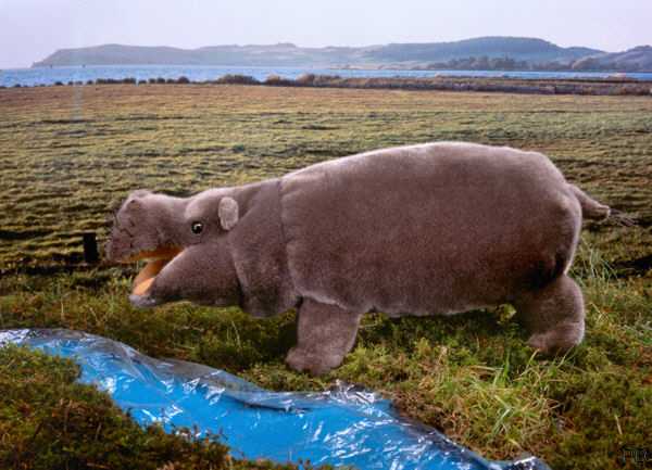Stoff Flusspferds mit 4 kurzen, stämmigen Beinen, die in Zehen mit hufartigem Nagel enden.