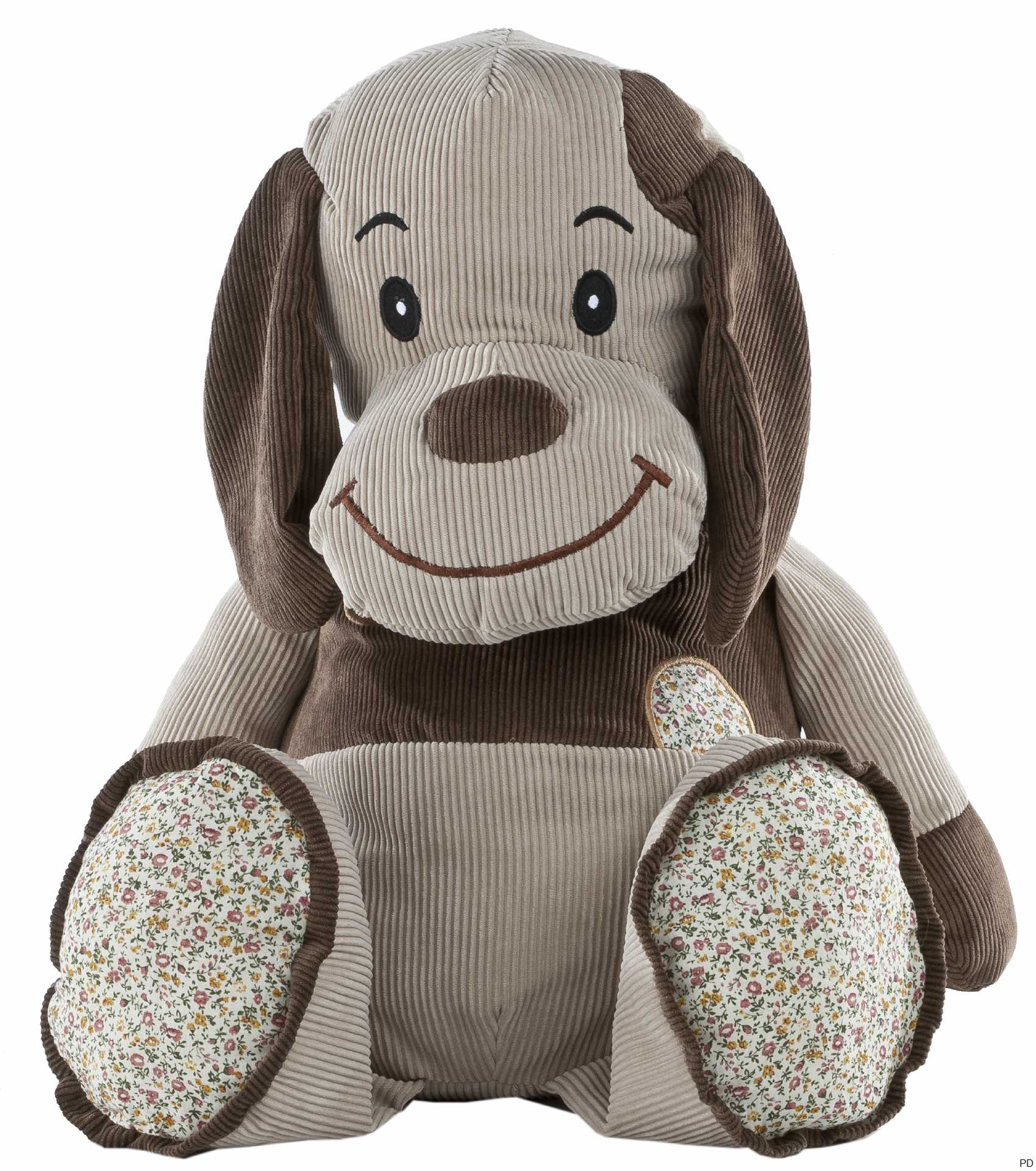 Plüschtier Hund aus hochwertig verarbeitetem Kord Material, mit kuschelweicher Füllung.