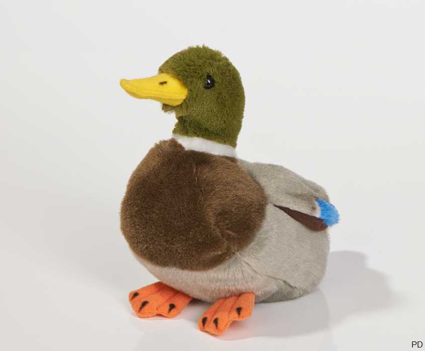 Plüschtier Erpel in sitzender Position.