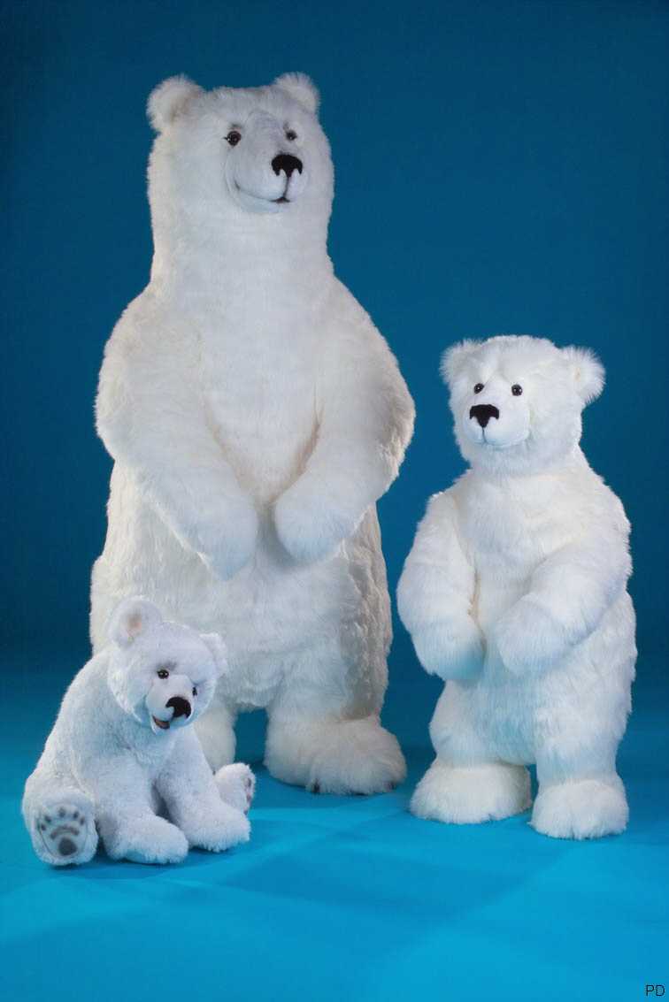 Der Eisbär ist wie abgebildet in verschiedenen Größen (70, 120 oder 180 cm groß) lieferbar.