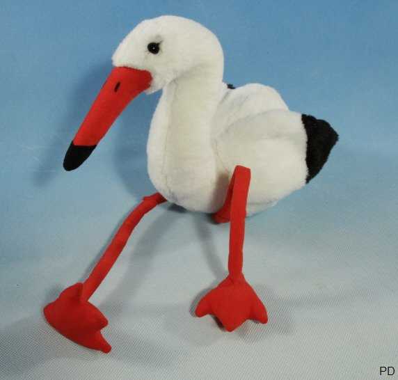 Plüschstorch, schlenkernd mit schwarzem Knopfauge.