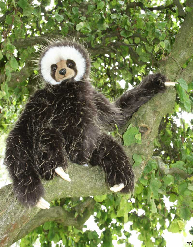 Die vorderen Gliedmaßen des Pluesch-Faultiers sind länger als die hinteren, an den Hinterbeinen hat das Stoff-Faultier drei Zehen.