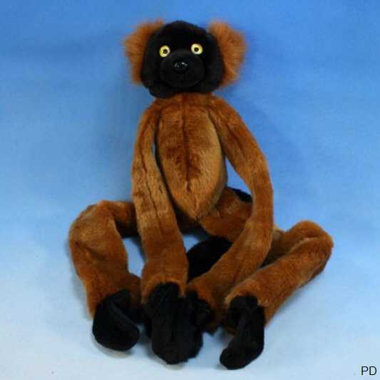 Der Schwanz des Plüschtier roter Lemur ist schwarz, ebenso die pfotenartig ausgebildeten Gliedmaßen.