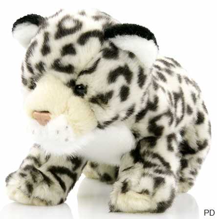 Das Plueschtier Schneeleopard ist aus kuscheligem, kurzflorigem Material hergestellt und superweich gefüllt.