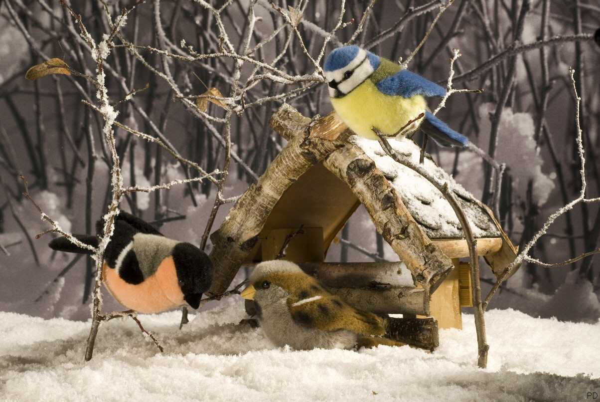 Gimpel 18 cm groß, Spatz 18 cm groß oder Blaumeise, 14 cm groß