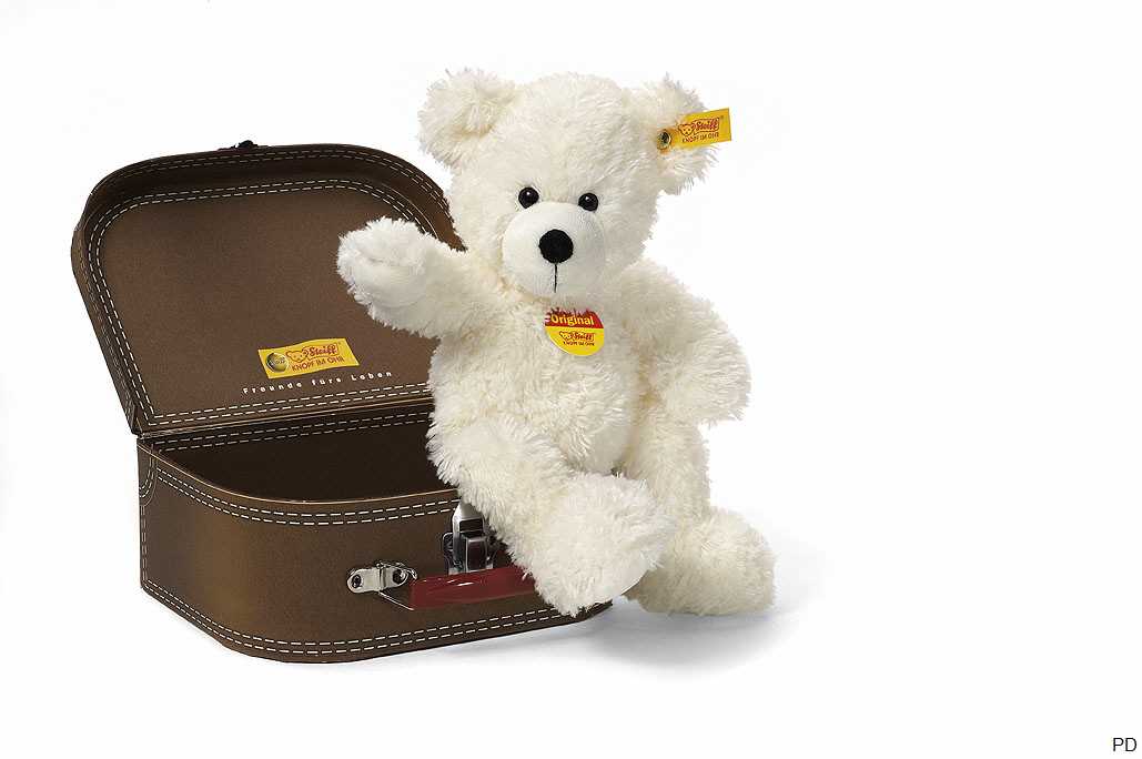 Teddybär "Lotte" hat schon seinen Koffer gepackt. Wohin er wohl reisen wird?