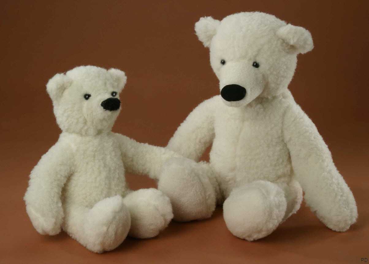 Teddybären aus Schurwolle mit Schurwollfüllung.
