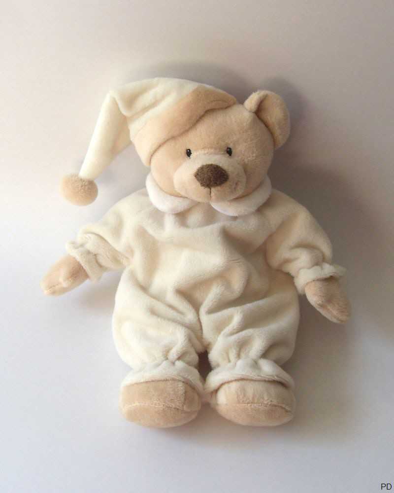 Schlaf-Teddybär mit Pyjama aus hochwertig verarbeitetem, weichem Plüsch-Material und kuschelweicher Füllung.