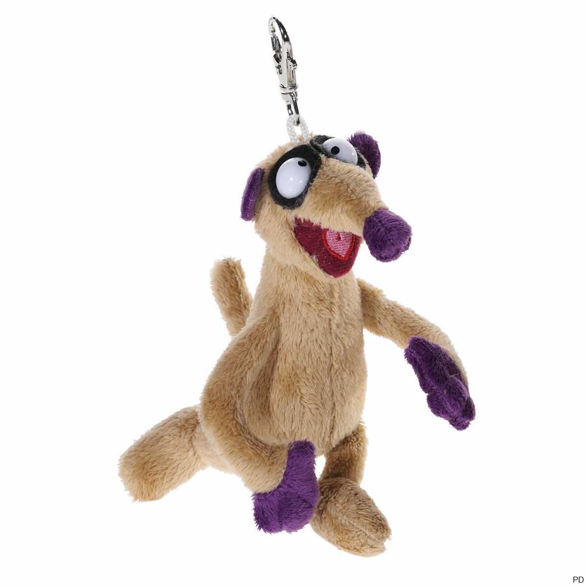 Mit seinen großen Augen und den violett abgesetzten Körperpartien ist dieser Plüsch Schlüsselanhänger "Jan" ein absoluter Hingucker.