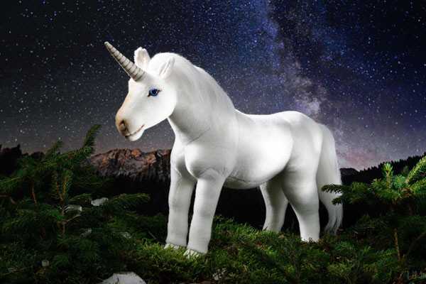 Plüschfigur Einhorn aus der Kösener Märchenwelt, 36 cm groß.
