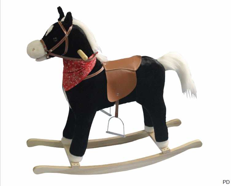 Farbe Plüschtier Schaukelpferd: schwarz, mit rot-gemustertem Halstuch.