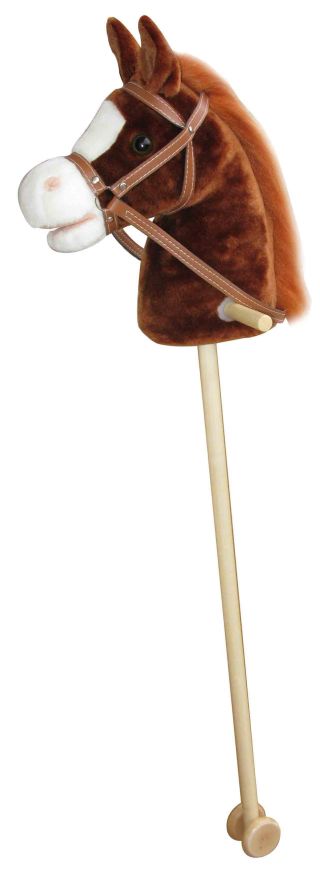 Plüsch Steckenpferd mit braunem Kopf, brauner Mähne, weißer Stirn und weißer Schnauze.