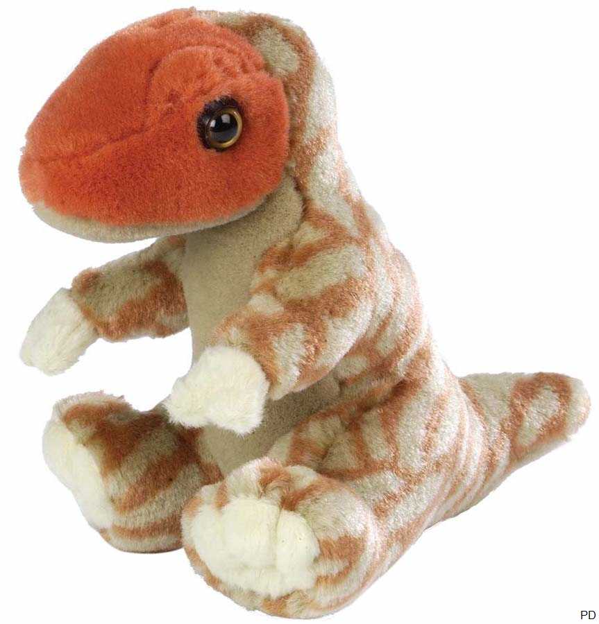 Farbe des Kuscheltiers Tyrannosaurus: braun mit gelb und rot