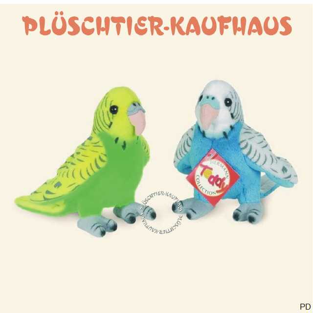 Plüsch Kanarienvögel, Plüsch Pfirsichköpfchen, Plüsch Wellensittiche, Plüsch Kakadus (Plüsch Gelbhaubenkakadus), Plüsch Papageien (Plüsch Aras, Plüsch Gelbbrustaras, Plüsch Graupapageien)