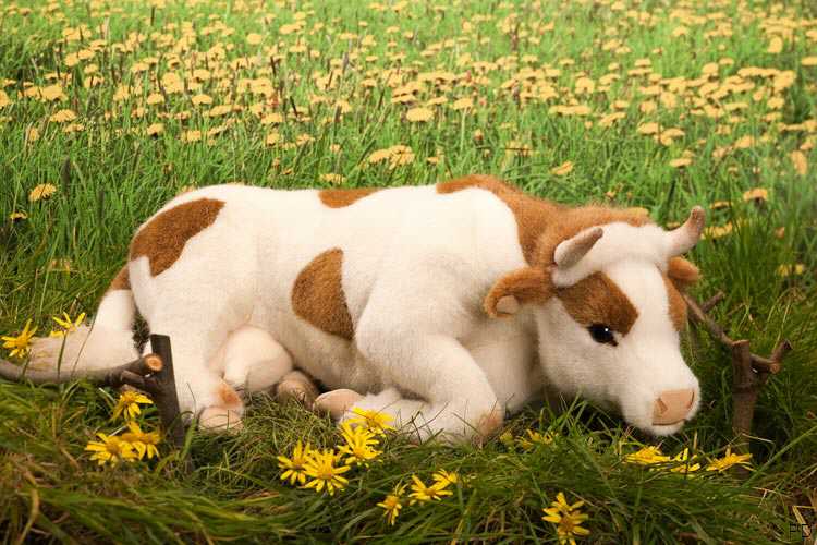Plüschtier Kuh in liegender Position.
