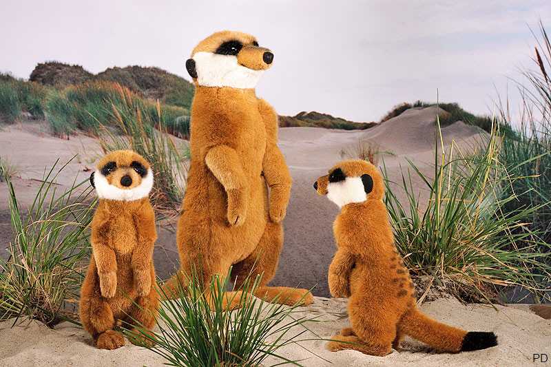 Größe Kuscheltier Erdmännchen: 38 cm (Vater), 25 cm (Kind)