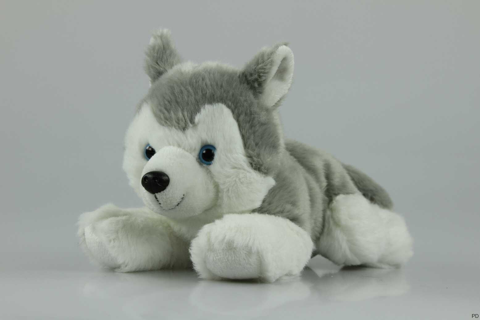 Plüschtier Husky in liegender Position.