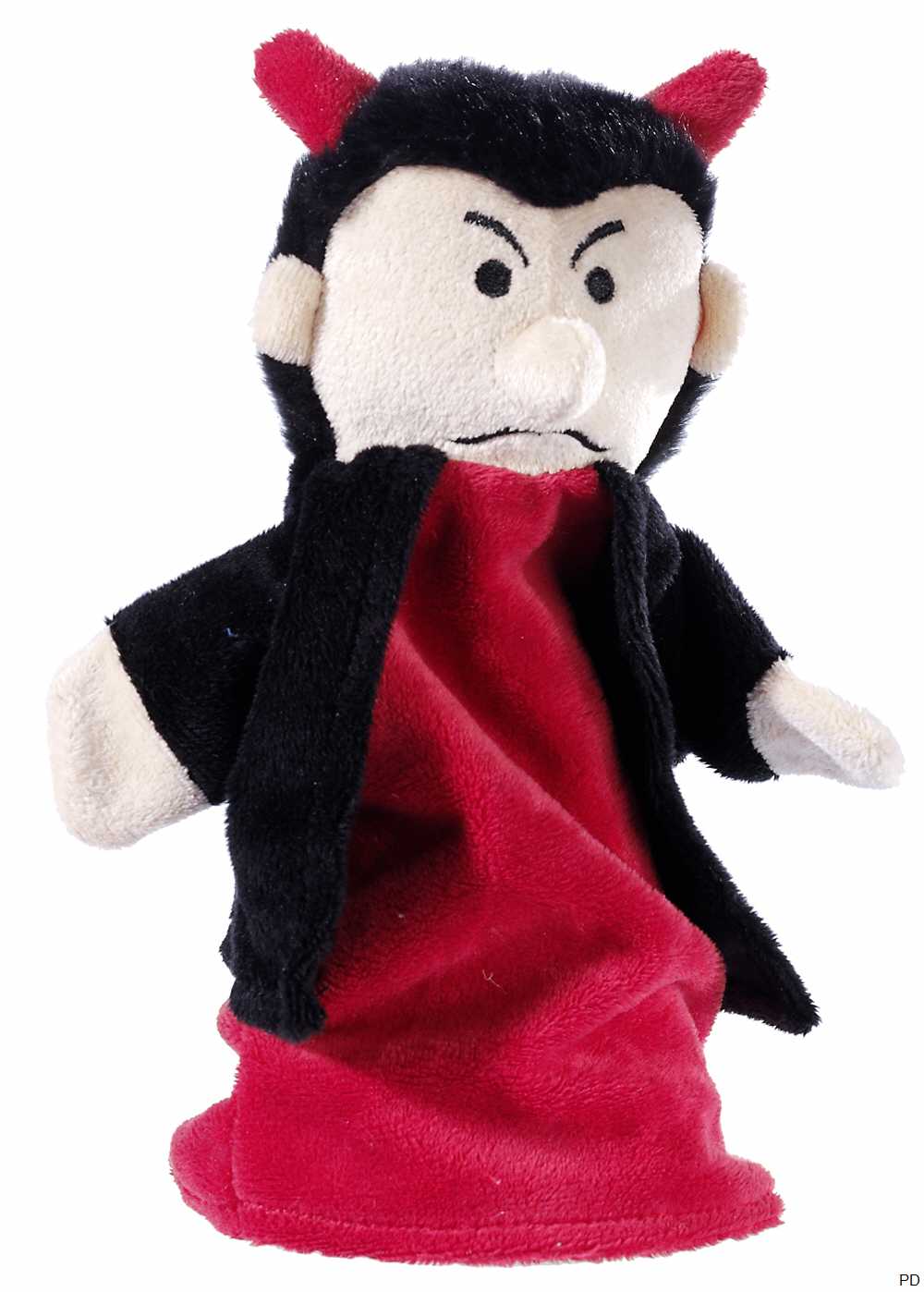 Plüschhandpuppe Teufel aus hochwertig verarbeitetem Softwool-Material.