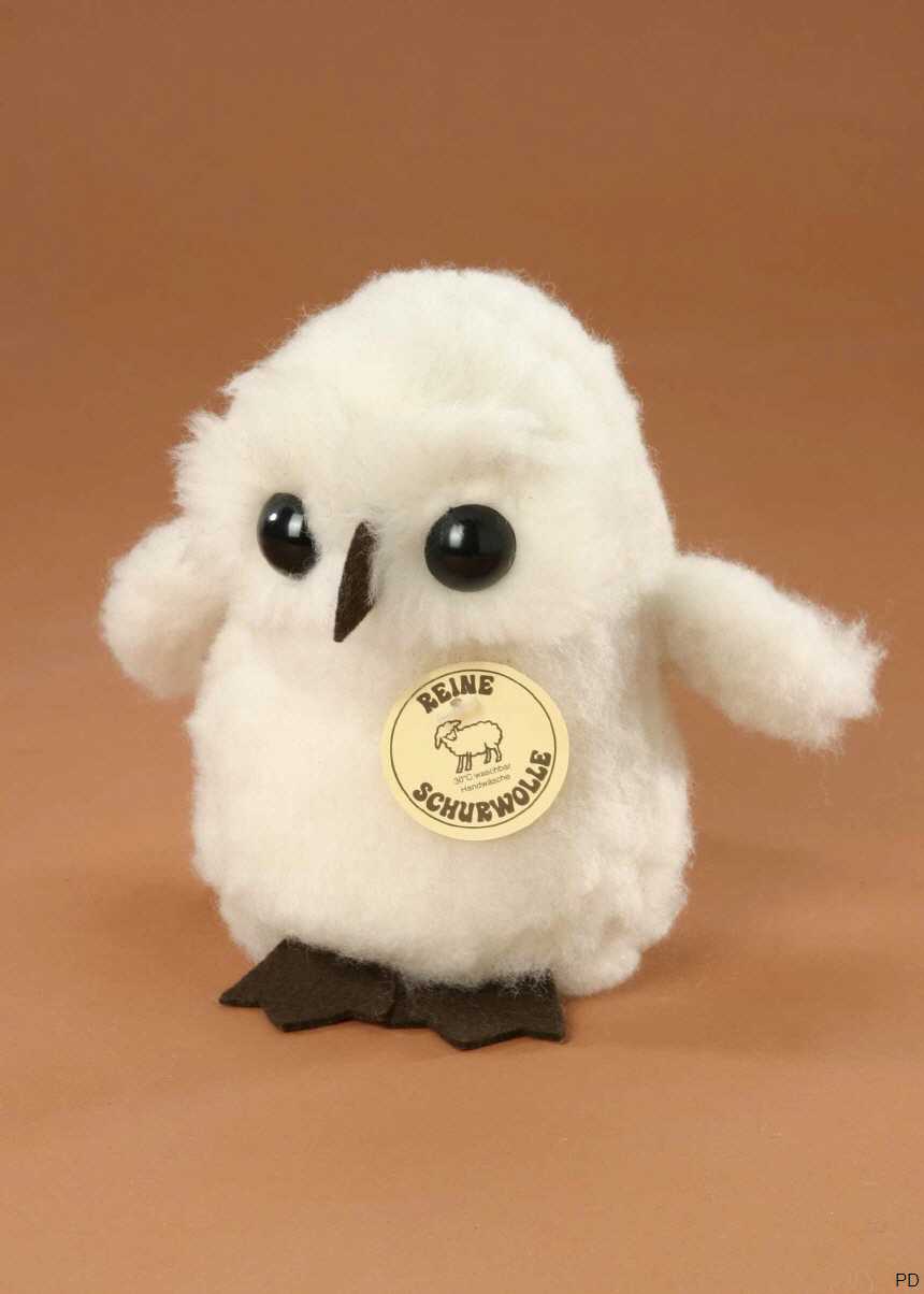 Plüschtier Eule aus Schurwolle mit Schurwollfüllung.