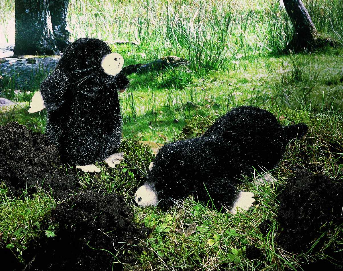Der Maulwurf ist wie abgebildet in den zwei Varianten "Erwin, sitzend" ( 15 cm groß) und "Alwin. liegend" ( 25 cm groß) lieferbar.