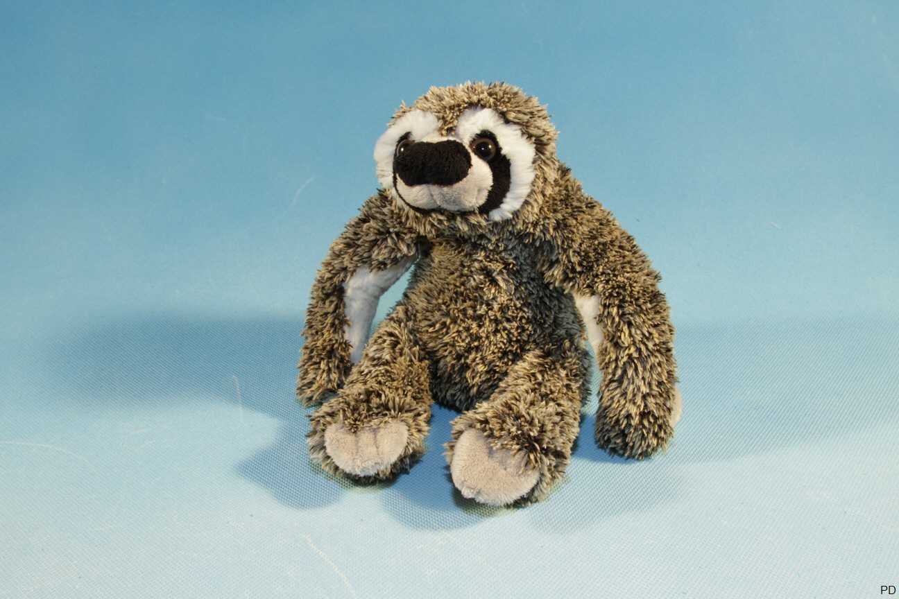 Plüschtier Faultier in sitzender Position.