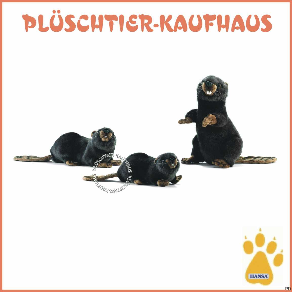 Plüsch Biber mit dunkelbraunem, sehr dichtem Fell.