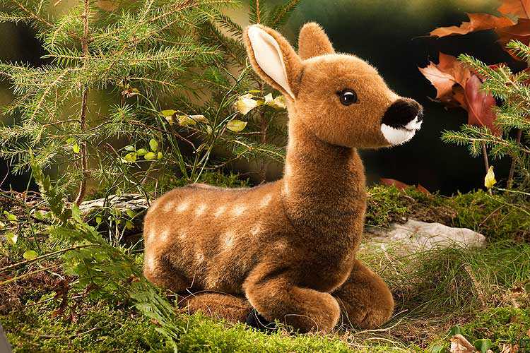 Plüschtier Rehkitz in liegender Position.