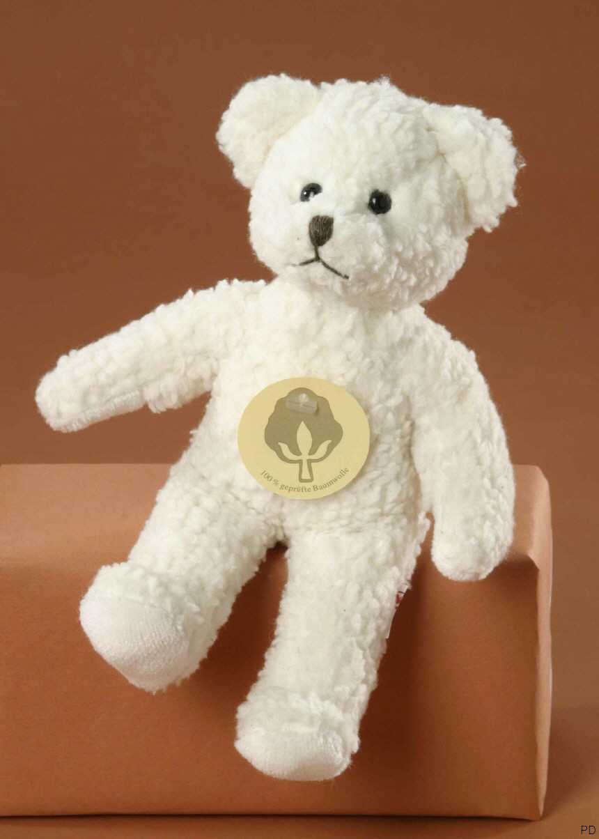 Für unsere Naturprodukte wurden Baumwollplüsch bzw. Baumwollfrottier aus kontrolliert biologischem Anbau (=k.b.A.) verwendet, Zertifikate sind vorhanden.