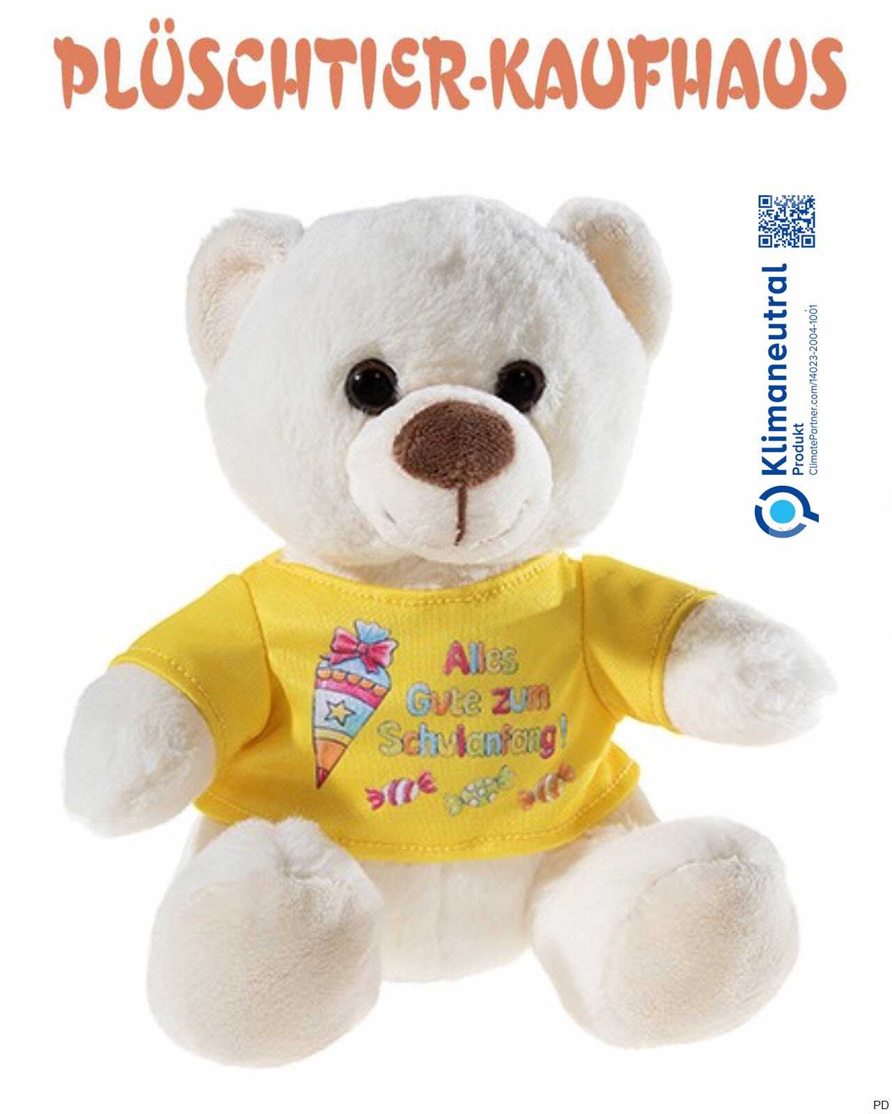 Schulanfang Teddybär mit bedrucktem T-Shirt für die Schultüte