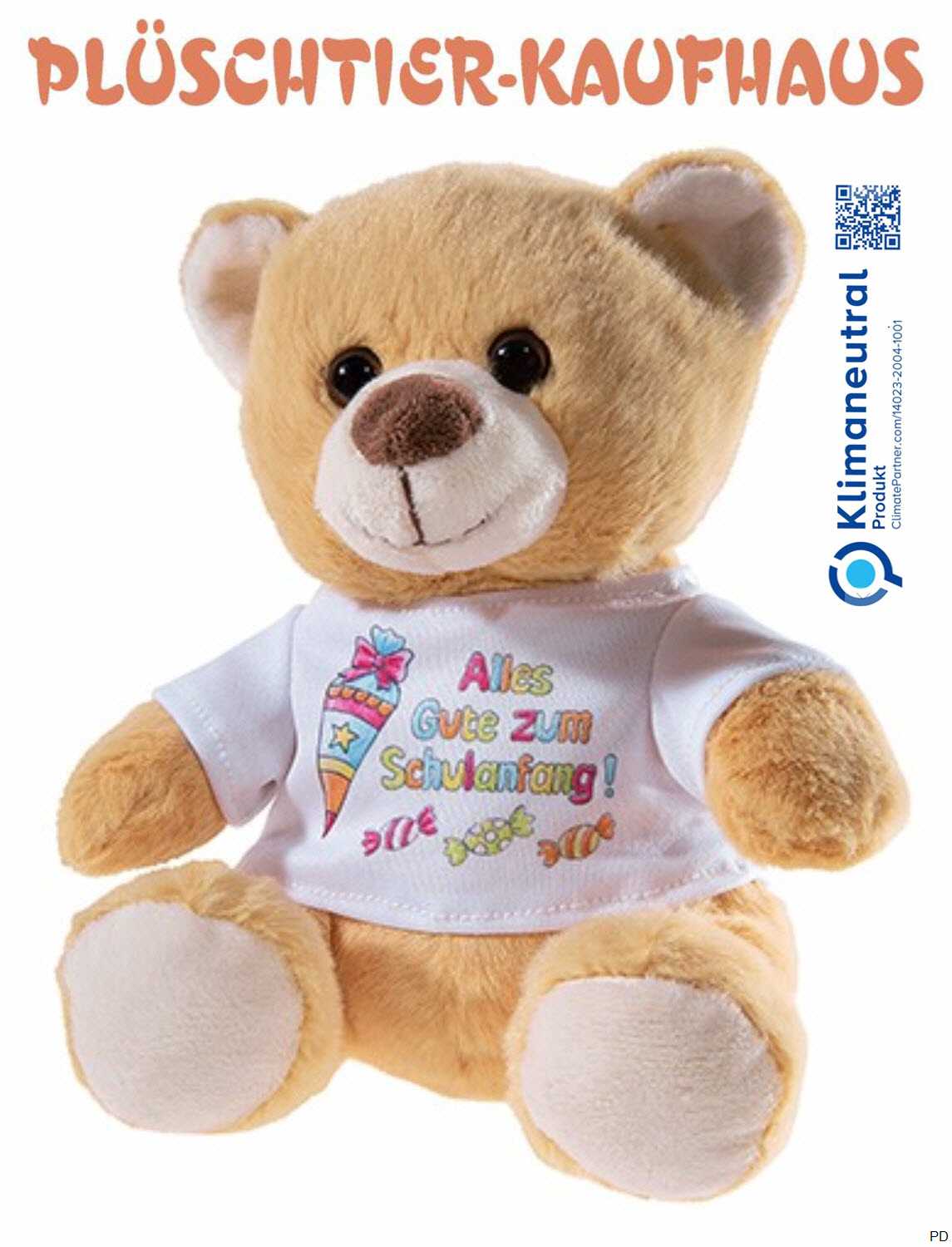 Schulanfang Teddybär mit bedrucktem T-Shirt für die Schultüte